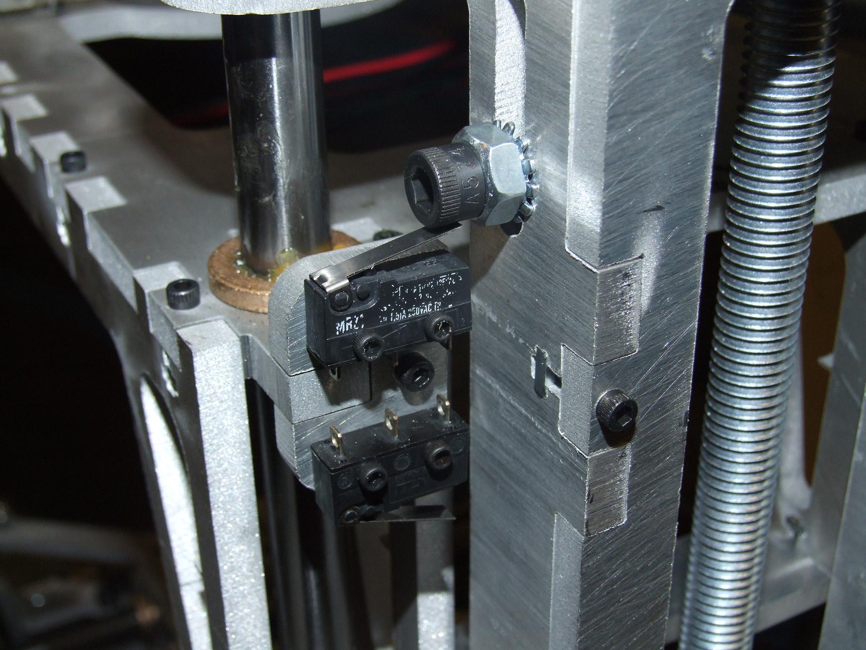 Turning my attention to the other side of the Z axis, I went and head and installed the small snap-action switches that will be the endstops. My “adjustable endstop” is also visible here. For the Z axis, I can move the endstop locations up and down about an inch on both the upper end and lower end of travel. It’s taken care of by the cap screw and nut sandwich.