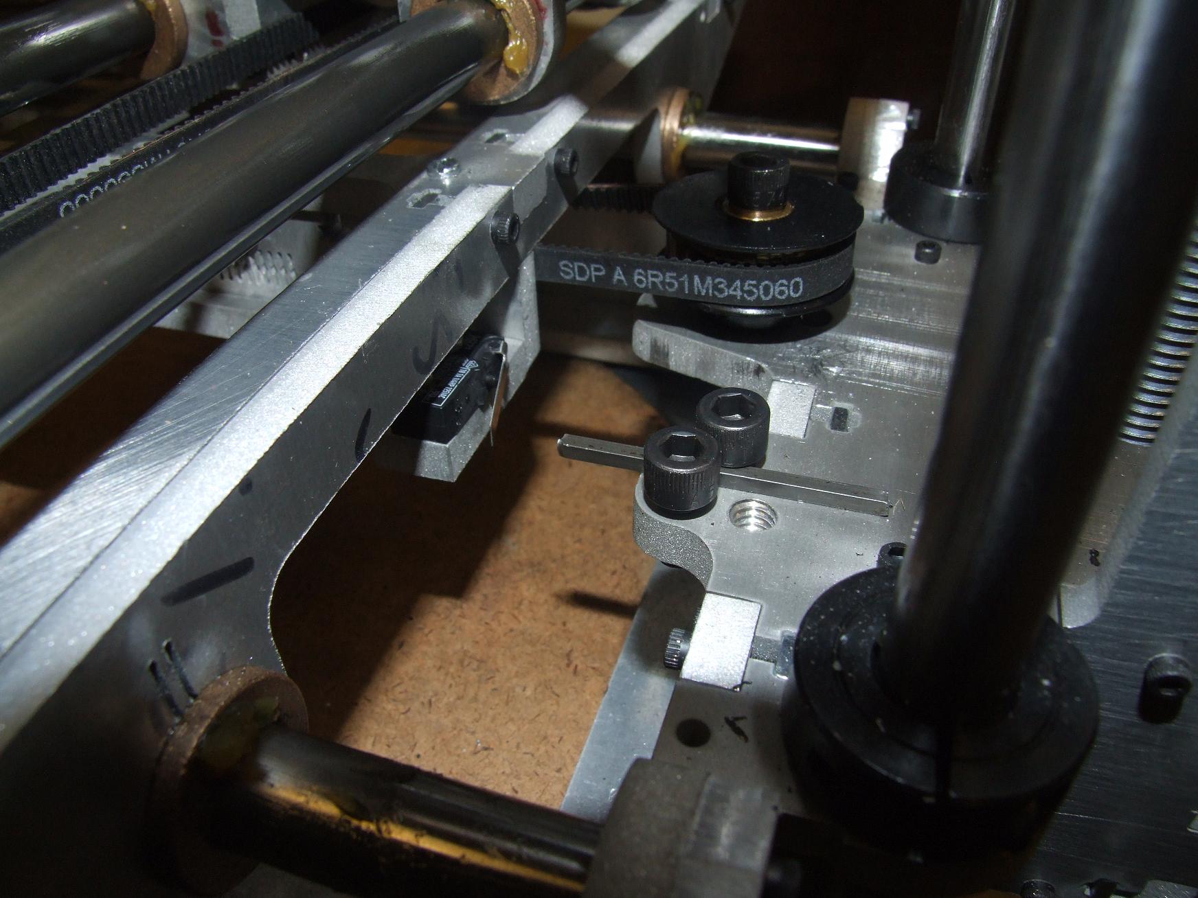 On the Y axis carriage, the same adjustment is provided by the Neat Sliding Rod Clamp… or in this case, keystock clamp. I found that square keystock stayed in place much better than round 1/8″ rod.