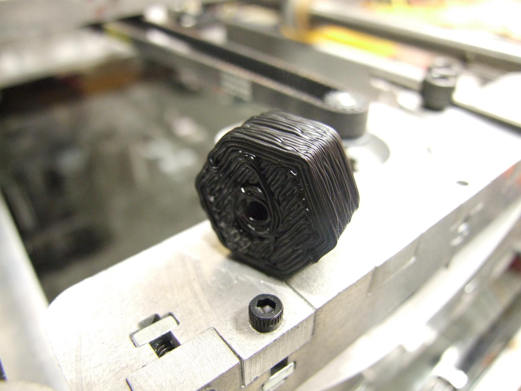 Alright, that’s enough for now. Next steps: fine tuning, calibration, and testing testing testing testing. Many things have yet to be optimized or verified. Feed rates, flow rates, layer thicknesses, all those 27,000 ratios and constants in Skeinforge, and even little things such as belt tension seemed to be impacting print quality substantially. I’m going to be reading Dave Durant’s guide like a lit major.