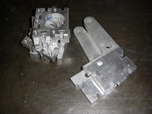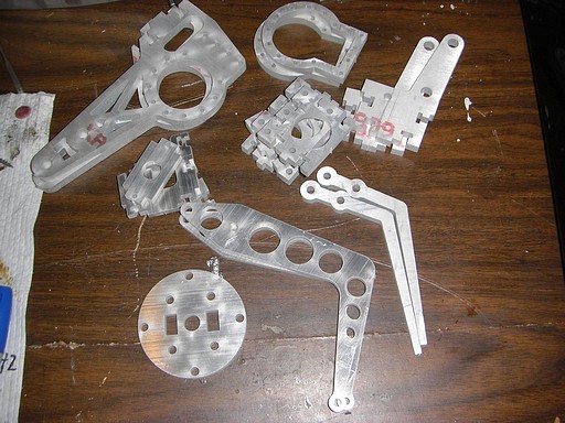 Pictured here are most of the parts for the swinging saw assembly and the two clamping fingers. These almost go together as-is.