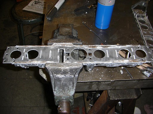 The stage after globbing is sanding the proverbial daylights out of the part. Using a large and wide belt sander helps establish a new flat surface that somewhat resembles the old. This actually makes the whole part look really nice, almost like it was meant to look like that!