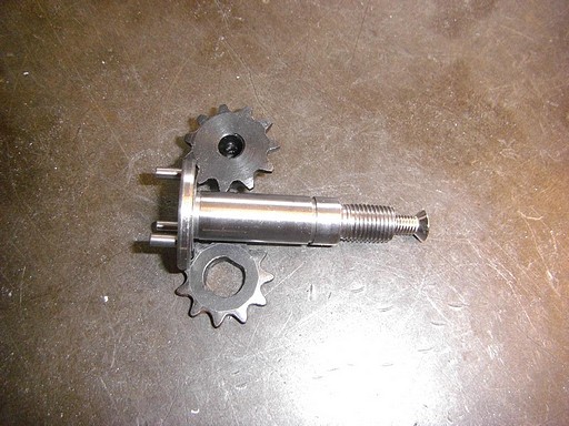 So that means there’s no way to actually attach the sprocket to the shaft. Too little thickness to set screw or cross-pin, at least that I was comfortable with. While I could have turned the drill shaft down, this required either changing bearings in the actuator body or making some kind of adapting sleeve. I thought the 11 tooth D-bore motor sprocket (from a scooter motor) that I found would save the day, but alas, it was 10mm.