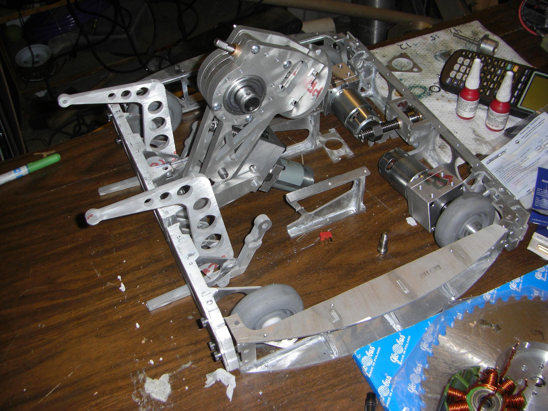 With term now well under way, the time I have to actually work on the robot has become more limited. Fortunately, there’s not that much grunge fabrication left to do on Arbor. It is, however, nowhere close to actually running. Major assemblies have been completed and most of the remaining tasks are just connecting the dots. Pictures of the dot-laying itself are below.