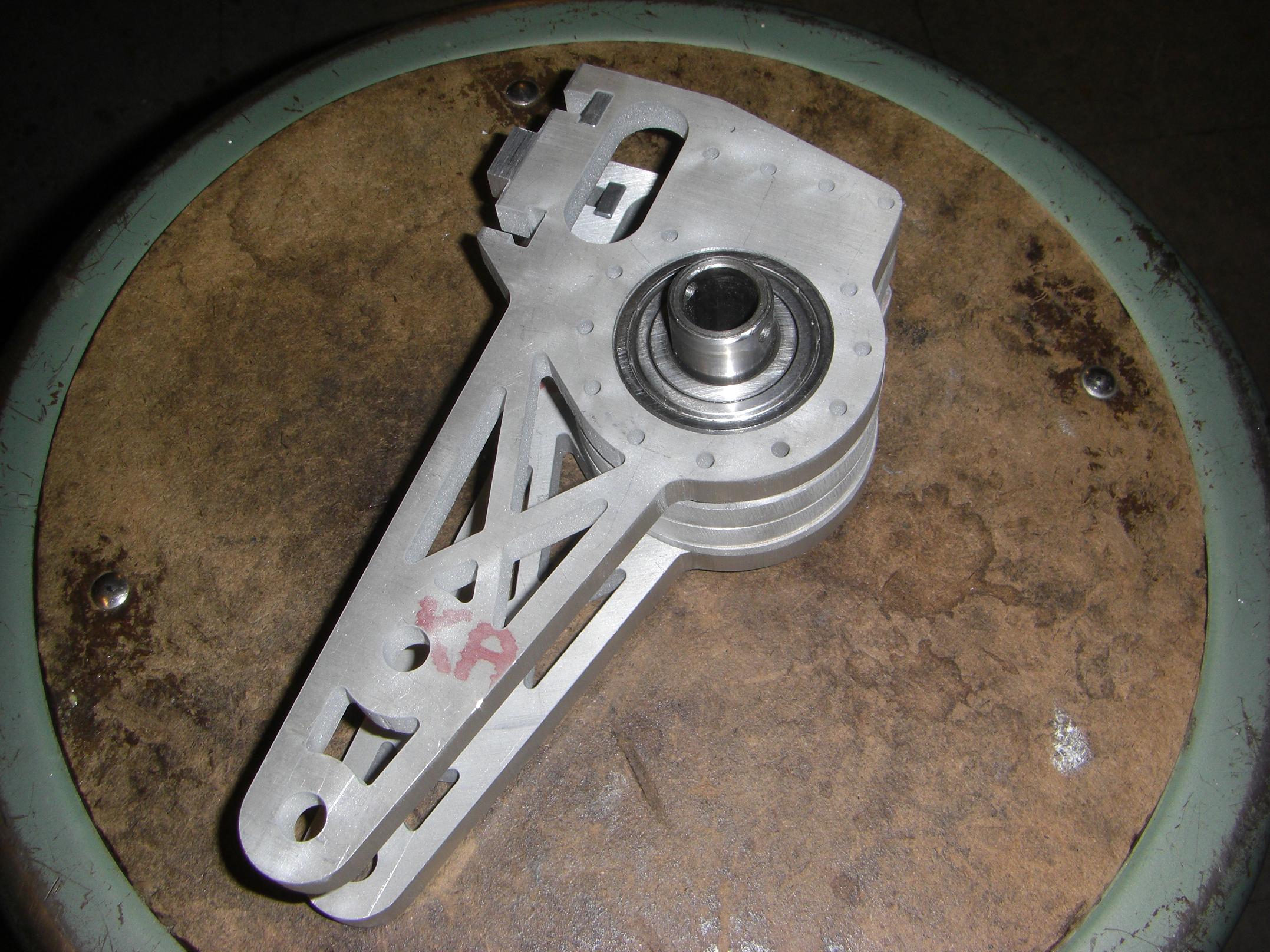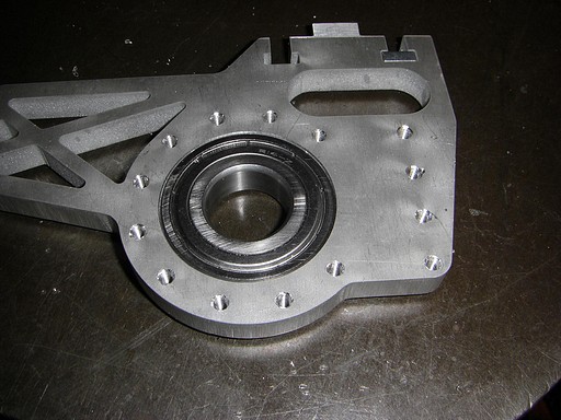 After cleaning up the bearing bore, I hopped on the 30 ton hydraulic press and slammed the bearings in. They are R14 double shielded ball bearings. Here’s the gearbox assembly just slipped together for visual effect.