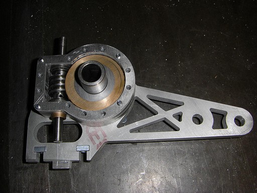 Here’s the first bolt-through of the entire worm gearbox assembly. I couldn’t locate 2 inch long #8-32 screws, so some dinky philips head deals had to take their place for now.